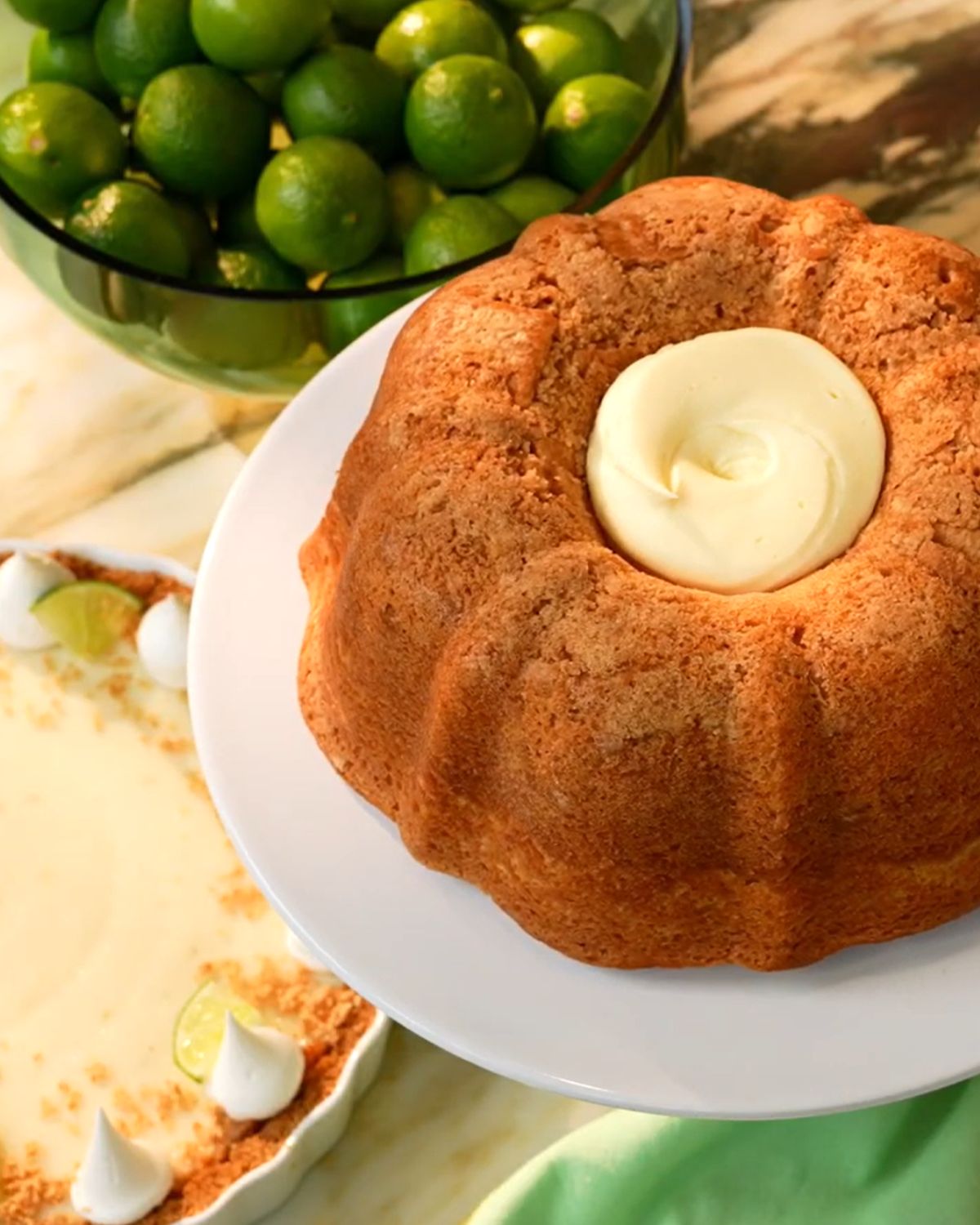 This Everyday Grand Key Lime Pie Bundt Cake is a nod to my Daddy Al’s favorite dessert the key lime pie he insists on at every gathering. The key lime crumb is topped with a buttery graham cracker crumble and smooth cream cheese frosting for the familiar flavor of key lime pie in a cake that’s simple to slice and share.